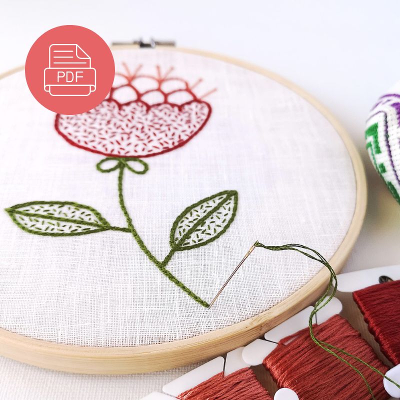 Red Abstract Flower Hand Embroidery PDF Pattern With Instructions