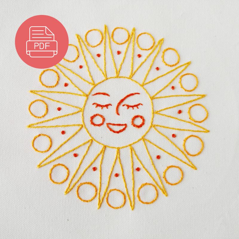Young Sun embroidery pdf pattern and instructions, simple embroidery design for beginners